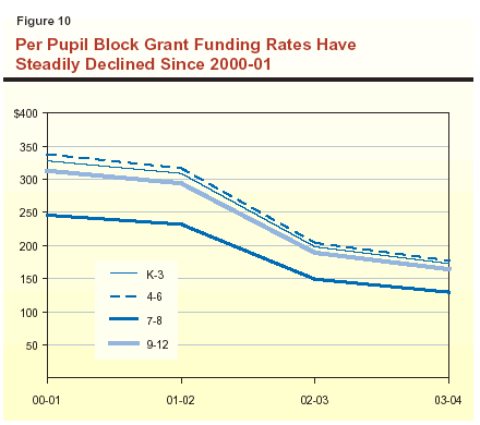 Adjust Per Pupil Funding Rates in Cost-Neutral Manner. Shifting these 24 programs into the block grant would result in charter schools being able to access more categorical funding, which in turn would increase per pupil block grant funding rates. This would thereby address the current discrepancy in state funding between charter schools and other public schools that RAND identified. Including additional programs in the block grant, however, raises the total amount needed to fund the block grant. To manage the restructuring in a cost-neutral manner, we recommend the Legislature shift some funding currently associated with each categorical program into the block grant. Specifically, as charter school ADA is approximately 2.5 percent of total public school ADA, we recommend the Legislature shift about 2.5 percent of funding associated with currently excluded categorical programs into the block grant. Additionally, some grade-span adjustments would need to be calculated as some of the categorical programs that would be moved into the block grant, such as K-3 Class Size Reduction and Regional Occupational Programs, are grade specific.