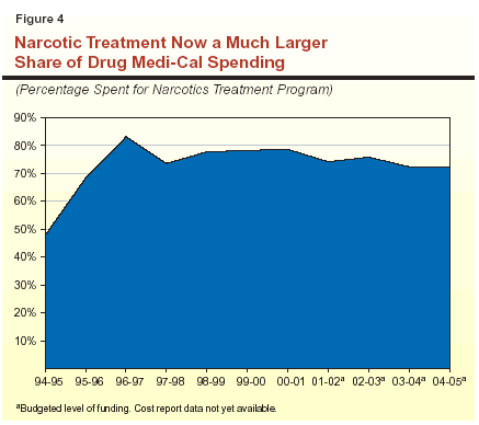 Placing methadone services under stronger state control would more effectively contain the growing cost of this mode of treatment while potentially making such services available on a more consistent basis across the state. The gradual integration of buprenorphine into Drug Medi-Cal narcotic treatment programs could also hold down methadone costs while involving more "mainstream" physicians in addiction medicine.
