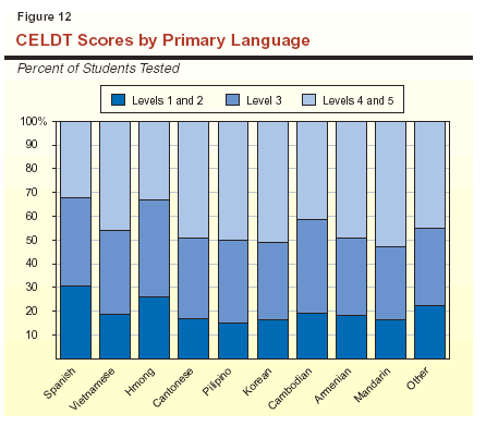 The CELDT results, however, provide a new perspective on an important question for our state: How well is the K-12 system addressing the needs of EL students? This data represents an indispensable tool for schools, districts, and the state to monitor the progress of EL students and to identify instructional strategies that create improved student outcomes. As the test is administered in future years and student-level scores are merged with results from the Standardized Testing and Reporting (STAR) tests and the High School Exit Examination, the state will be able to expand its understanding of these critical issues.