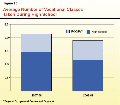 These policies can be grouped into two categories. The first group includes state laws or programs that structure student choices over the courses they take in high school. This includes high school graduation and university admission course requirements. Also in this group are state-funded Regional Occupational Centers and Programs (ROC/Ps), which provide vocational education courses to students beginning in their junior year. Graduation and university course requirements affect student demand for certain courses while ROC/Ps increase the supply of vocational courses available to students.