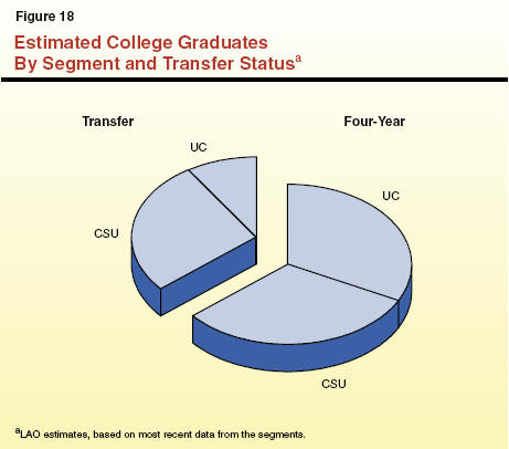 The figure also shows that transfer students account for almost one-half of recent high school graduates earning a degree at CSU and more than one-fifth of UC graduates. These data indicate the importance of CCC in getting students on the road to a four-year degree.