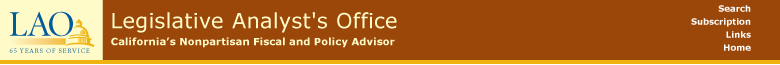 To request publications call (916) 445-4656. This report and others, as well as an E-mail subscription service, are available on the LAO's Internet site at www.lao.ca.gov. The LAO is located at 925 L Street, Suite 1000, Sacramento, CA 95814. |
