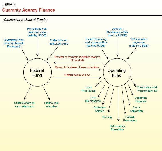 Guaranty Agency Finance. Guaranty agencies are required to be nonprofit. Each guaranty agency is required by federal law to maintain two funds-the Federal Reserve Student Loan Fund (Federal Fund) and the Student Loan Operating Fund (Operating Fund). Figure�3 shows the primary in-flows and out-flows of these two funds.