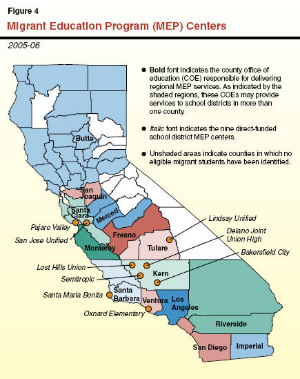 a Reflects funding provided to school districts that are currently designated as Migrant Education Program (MEP) centers. Does not include funding passed through to some school districts by COE regional centers. |