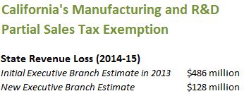 Current Estimate: $128 Million. According to the administration’s current estimates, the exemption reduced General Fund revenue by $128 million in 2014-15—about one-quarter of the amount initially projected.