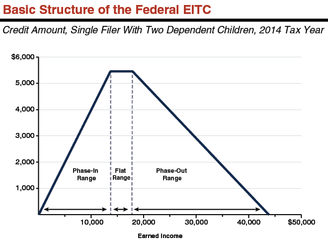 As Income Increases, Credit Amount Rises, Then Phases Out. The EITC benefit schedule depends on the number of dependent children the taxpayer has and on whether they are filing a single or joint tax return. In every case, as shown in the figure below, the EITC has: