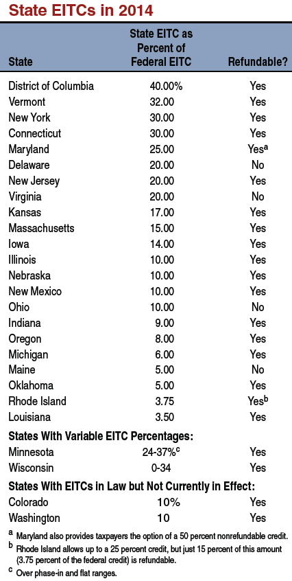 The IRS provides a helpful webpage here that includes links to state and local tax agency websites concerning these state EITCs. Below is a figure from our report describing key features of other states' EITCs. (For more information, see the "State-Level EITCs" section of our report.)