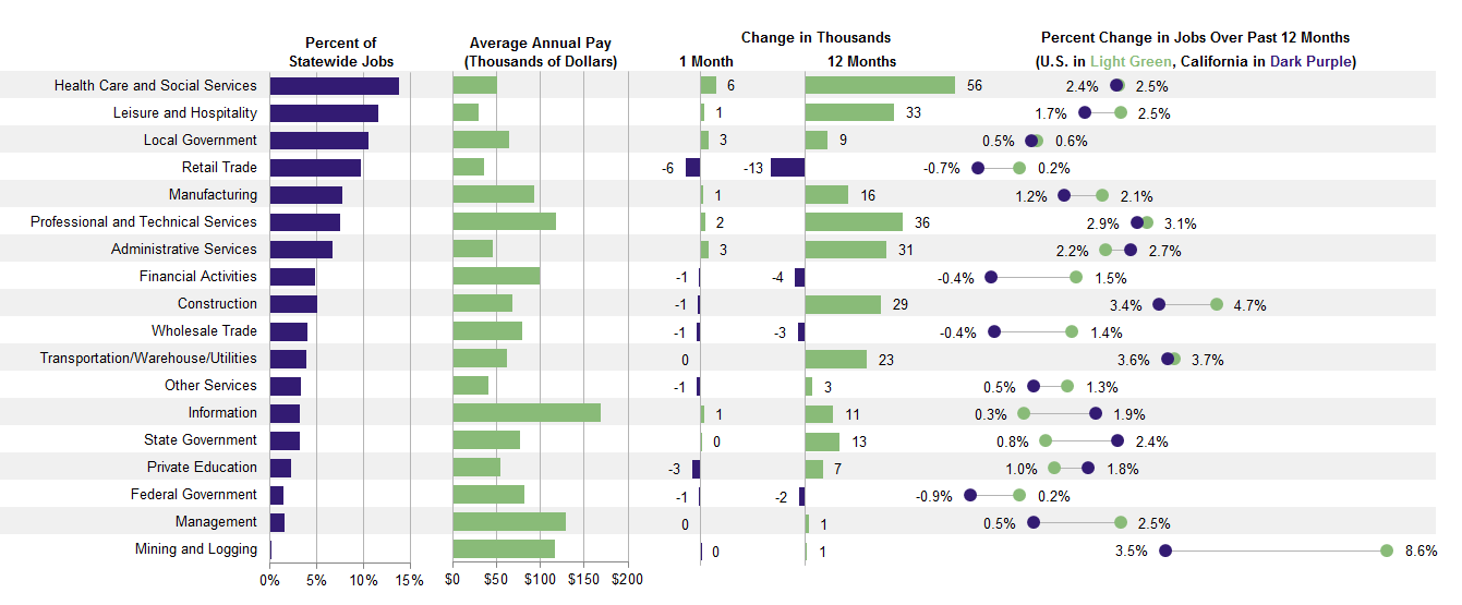 California's Employment Development Department and the U.S. Bureau of Labor Statistics released California's January 2019 state jobs report last Friday. Statewide nonfarm employment grew by an estimated 3,000 in January, the lowest reported growth number since July 2018. The official unemployment rate ticked up to 4.2 percent, slightly above the 4.1 percent rate that stood for the entire second half of 2018.