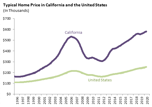 Home prices are important to the California economy for a number of reasons. In the short and medium terms, home price increases often drive construction activity, which in turn spurs employment growth in a wide range of sectors. In the longer term, chronically high housing costs have hurt the state’s business climate and been a key reason California loses residents to other states on net in most years.