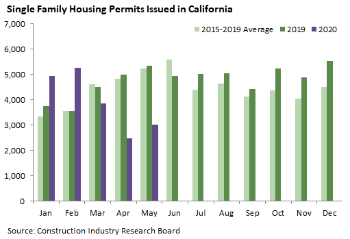 California recorded 6,430 housing permits in May, down 32 percent from May 2019. While this was above the April figure of 5,383, it was the lowest May total since 2012. These figures show the continued impact of the COVID-19 pandemic and associated lockdown.