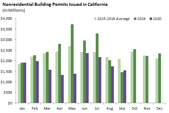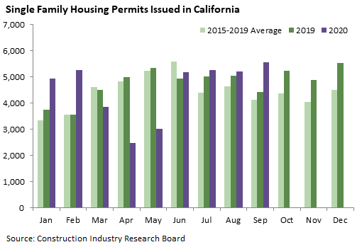California recorded 9,764 housing permits in September, down 8 percent from September 2019 but the highest monthly total yet in 2020.