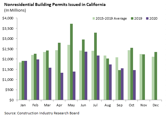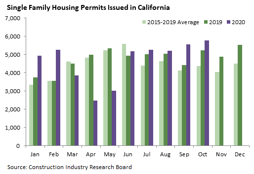 California recorded 8,107 housing permits in October, down 16 percent from October 2019 and in line with the 2020 average of about 8,000 units per month.