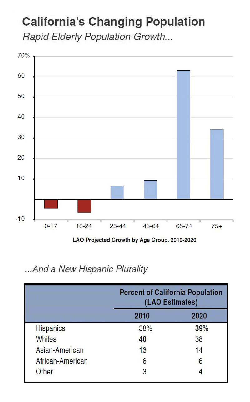 • Still, California is A Young State. According to DOF projections, "California will remain one of the younger states in the Union for the next 20 years." Because of "California's diversity and because of its role as the primary gateway state for immigration, California will not age as rapidly in the coming 20 years as many other states," DOF said.