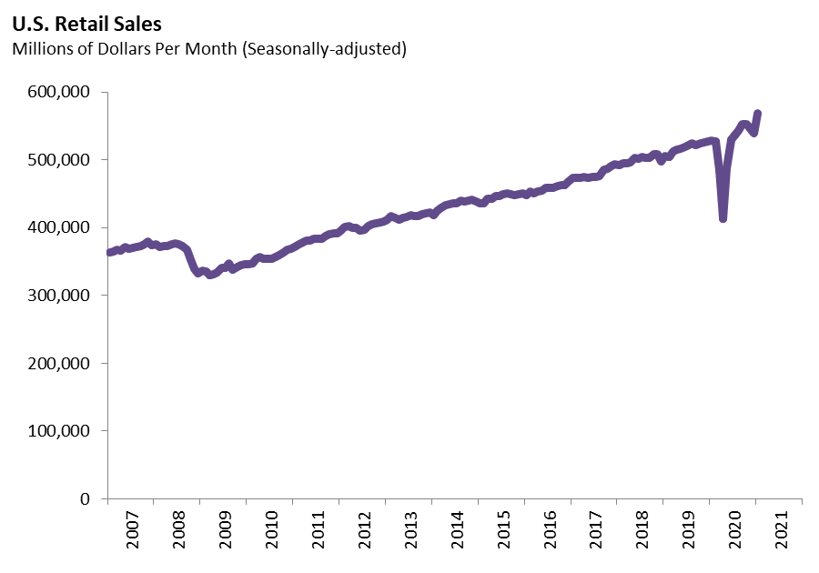 Today the U.S. Census Bureau released preliminary estimates of nationwide retail sales in January 2021 and revised estimates for December 2020. (The data include both brick-and-mortar and Internet sales.)