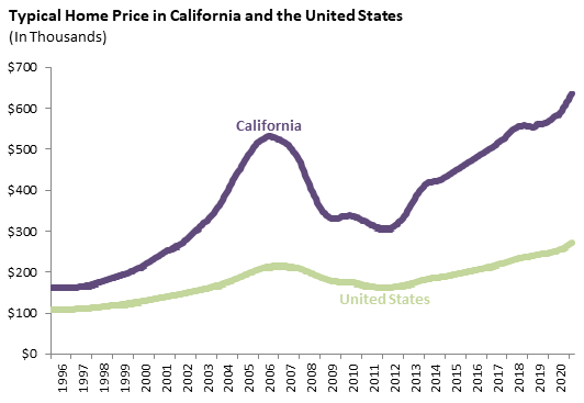 Home prices are important to the California economy for a number of reasons. In the short and medium terms, home price increases often drive construction activity, which in turn spurs employment growth in a wide range of sectors. In the longer term, chronically high housing costs have hurt the state’s business climate and been a key reason California loses residents to other states on net in most years.