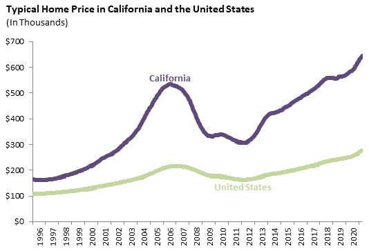 Home prices are important to the California economy for a number of reasons. In the short and medium terms, home price increases often drive construction activity, which in turn spurs employment growth in a wide range of sectors. In the longer term, chronically high housing costs have hurt the state’s business climate and been a key reason California loses residents to other states on net in most years.