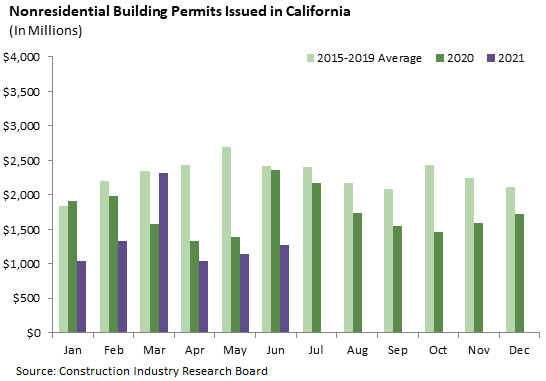 California recorded 10,685 housing permits in June, up 35 percent from June 2020 when activity was limited by pandemic restrictions. Total permits in 2021 year to date are 33 percent above the same months in 2020.