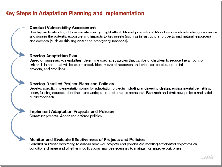 How to incorporate climate change projections into the state’s infrastructure design, planning, and implementation. |