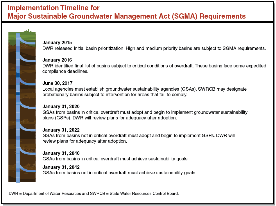Implementation Timeline for Major Sustainable Groundwater Management Act (SGMA) Requirements