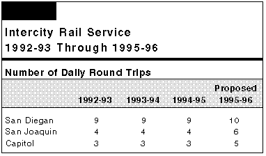 We recommend that $14.3 million requested for the expansion of intercity rail service in 1995-96 be deleted because the department is unable to provide any ridership projections that justify the service expansion. (Reduce Item 2660-001-046 by $14.3 million.)