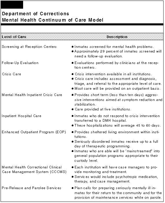 In addition, the Governor's Budget also does not specify what the CDC plans to accomplish with the $10 million during 1995-96. CDC officials indicate that they may examine the present system of classifying inmates for assignment to prisons, and may also study a large-scale reorganization of the department into regional units.
