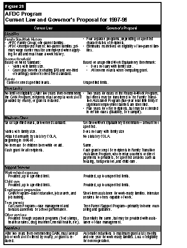 | Figure 29 AFDC Program Current Law and Governor's Proposal for 1997-98 |