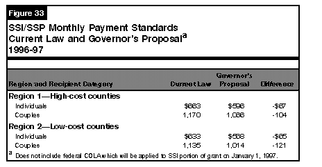 | Figure 33 SSI/SSP Monthly Payment Standards Current Law and Governor's Proposala 1996-97 |