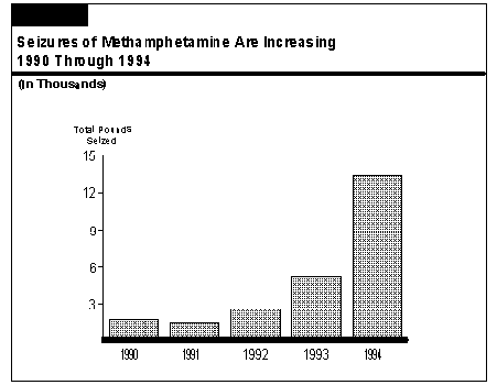 Background. The illegal use of methamphetamine is growing at an alarming rate. Data from hospital emergency rooms and from medical examiners have shown significant increases in methamphetamine-related hospital admissions and deaths. In 1994, California hospital emergency rooms reported up to 90 percent increases in the number of admissions related to the illicit use of methamphetamine. From 1991 to 1994, the number of deaths attributed to methamphetamine increased by 144 percent in San Francisco and by 113 percent in Los Angeles. An estimated 4 million persons in the United States have abused methamphetamine at least once.