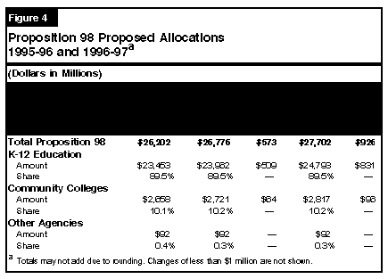 | Figure 4 Proposition 98 Proposed Allocations 1995-96 and 1996-97a (Dollars in Millions) |