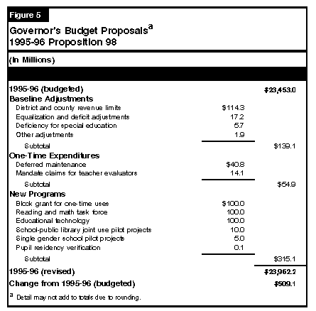 | Figure 5 Governor's Budget Proposalsa 1995-96 Proposition 98 (In Millions) |