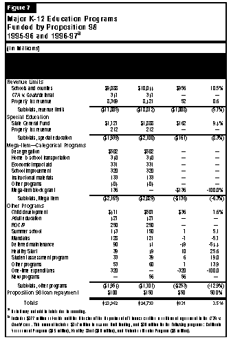 | Figure 7 Major K-12 Education Programs Funded by Proposition 98 1995-96 and 1996-97a (In Millions) |