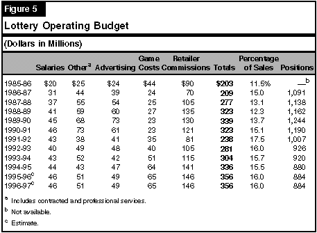 | Figure 5 Lottery Operating Budget (Dollars in Millions) |