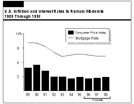 One of the most positive developments over the past year has been the continued good news on inflation. The consumer price index (CPI) increased just 2.8 percent in 1995, the third consecutive year below 3 percent and the second lowest increase in 30 years. Partly in response to the positive inflation developments, long-term interest rates declined over the year, with 30-year U.S. Treasury bond yields falling below 6 percent at year-end.