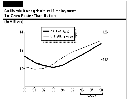 Although a significant slowdown or national downturn would certainly affect California, we believe that the prospects for continued economic growth in California are somewhat more certain than for the rest of the nation, as the state clearly entered 1996 with more momentum than other regions of the country. Nonetheless, even a modest slowdown in California could have a significant negative impact on the state's budget condition in 1996-97.
