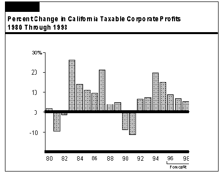 We forecast that taxable corporate profits will increase at an average annual rate of about 7 percent over the next three years. Aside from the overall strengthening in California's economic outlook, profits are benefiting from major increases in business efficiencies. These improvements have resulted from past cost-cutting measures instituted by firms during the recession, as well as ongoing efforts to trim costs and remain competitive. The efficiency measures have been accompanied by numerous business consolidations and employee layoffs, and thus have taken a toll on the California economy over the past several years. However, as a result of these actions, increases in sales and output are now