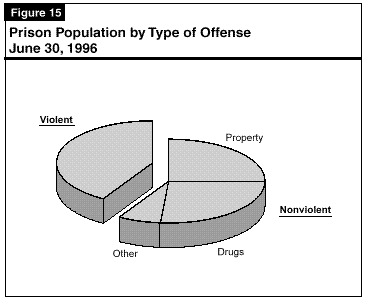 The changing mix of offenders also translates into a slower pace of growth for the prison population than would otherwise have occurred. This is because inmates committed for violent and serious crimes serve prison sentences that are almost twice as long, on average, as inmates committed for drug-related or nonserious property crimes. The prison system is getting a smaller share of inmates with long sentences and a larger share of inmates with short sentences. This adds up to a net reduction in the length of prison time that must be served by new admissions than would otherwise be the case.