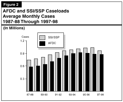 number of cases in SSI/SSP is greater than in the AFDC Program, there are