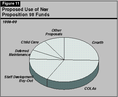Figure 11 illustrates how the budget would allocate projected growth in the Proposition 98 funds in 1998-99.