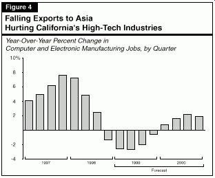 While the effects of Asia's crisis have so far been muted by other factors, the state and the nation remain vulnerable to potential further negative developments abroad. For example, further steep declines in exports to Asia could deepen and thus exacerbate the current downturn in California's high-tech industries, thereby undercutting consumer and business confidence in the state's economy. Thus, the outlook for Asia is very important. The key issue is the extent to which Asia's problems will continue to pull down U.S. and California economic growth in the future.