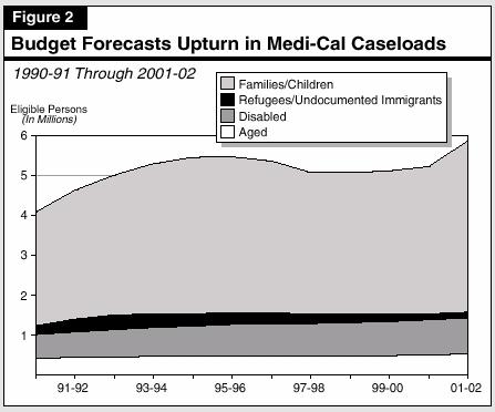 Medi-Cal Caseloads. As shown in Figure 2, the Governor's budget plan assumes that significant caseload growth will occur during the budget year in the Medi-Cal program. Specifically, the overall caseload is anticipated to increase by about 640,000, or 12 percent, during 2001-02 compared to the estimated current-year caseload.