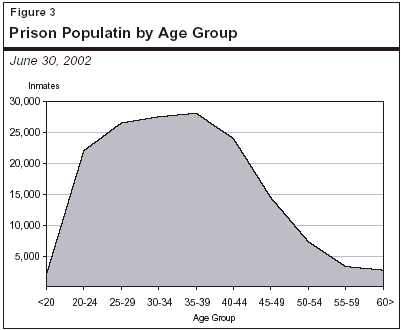 Background. Inmates 55 years of age and older are becoming a larger part of the CDC's institutional population. Currently, approximately 3,509 inmates are between age 55 and age 59, 1,621 inmates are between age 60 and 64 years of age, and 1,267 inmates are 65 years or older. Because older inmates tend to have more significant medical problems, the graying of CDC's population has serious long- and short-term General Fund implications. Last year, we discussed releasing nonviolent, elderly inmates to parole as one of the Legislature's options for addressing the state's fiscal problem. This analysis provides additional information on the cost of housing older inmates in California prisons, and discusses research related to elderly inmates and their likelihood to reoffend.