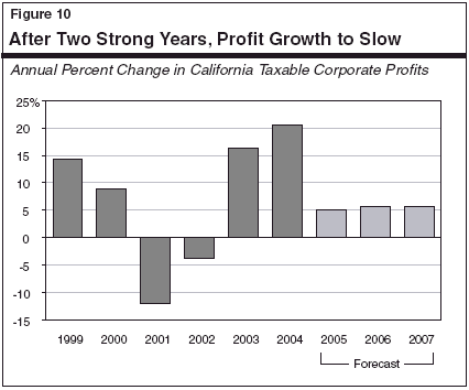 Looking ahead, we forecast that taxable California corporate profit growth will slow significantly, to around 5 percent annually in each of the following three years. The more moderate increases projected for the next two years reflect (1) rising wage costs (as companies step up hiring), (2) a slowdown in productivity growth (as normally occurs as an expansion ages), and (3) a more moderate pace of economic expansion, which will result in more moderate gains in company sales and output growth.