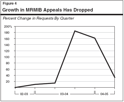 However, some of this increase in workload appears to be temporary. For example, our analysis indicates that the upswing in appeals is beginning to level off. As seen in Figure 4, the percentage increase in appeal requests spiked during two quarters of the current year, but now appears to be in line with previous trends.