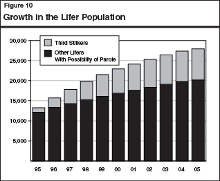 There is a considerable likelihood that the current inability to accurately identify workload will become a more substantial problem in the future because the lifer population has been increasing at a significant rate, thereby inevitably leading to increased lifer hearing workload in subsequent years. As Figure�10 shows, the lifer population has increased 110�percent (8�percent average annual growth) over the last decade. By comparison, the total inmate population has grown by 21�percent (2�percent annually) over the same period. In addition, the current parole hearing workload does not yet include third strikers who will first be eligible for parole in 2019. While this occurrence is more than a decade away, the additional workload for BPH will be substantial, potentially adding more than a thousand new parole hearings to the workload each year. A failure to adequately plan for the inevitable growth in the lifer hearing caseload could result in significant hearing backlogs.