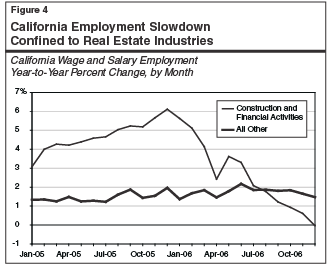 In summary, California’s economy clearly slowed over the course of 2006, but the reduction in growth was primarily concentrated in real estate-related industries. While softness in the real estate sector will continue to drag down growth in early 2007, the overall economy appears to have been in relatively good shape as the new year began.