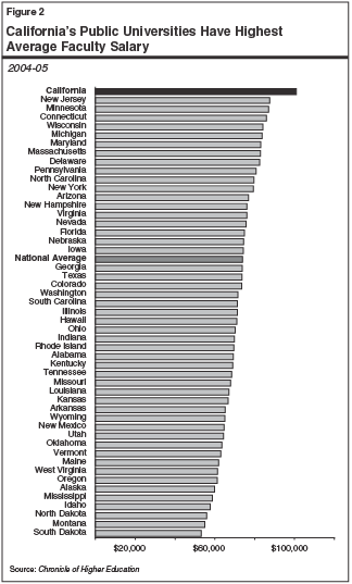 Comparing UC and CSU with different groups of institutions can tell a very different story than what CPEC’s recent reports have suggested. For example, as shown in Figure 2, the Chronicle of Higher Education recently reported that the average faculty salary at state public universities is higher in California than any other state in the nation.