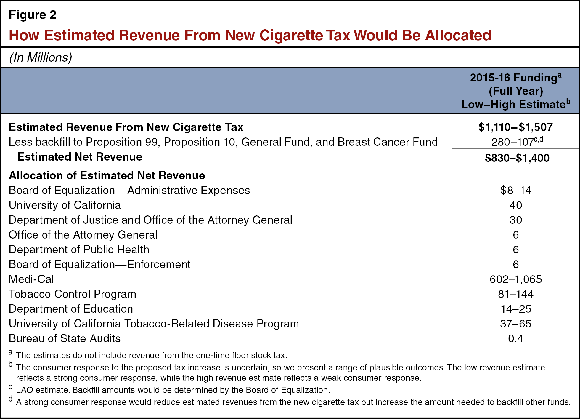 effect on excise taxes that go to support Proposition 99 purposes. Under