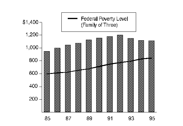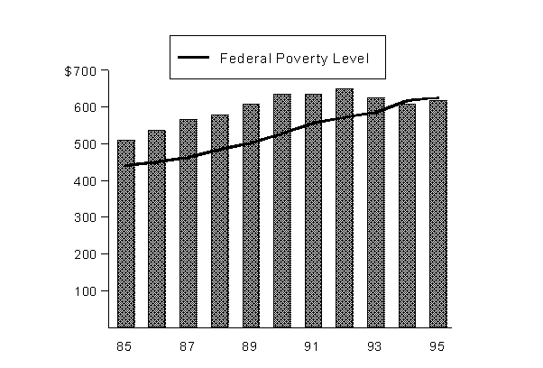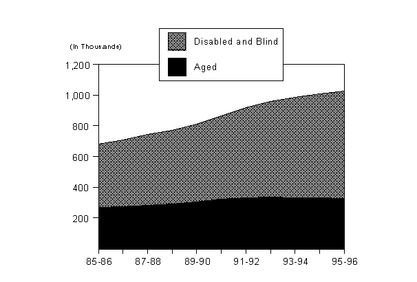 - 1994-95 grant for aged and disabled individuals (largest category): $614 per month